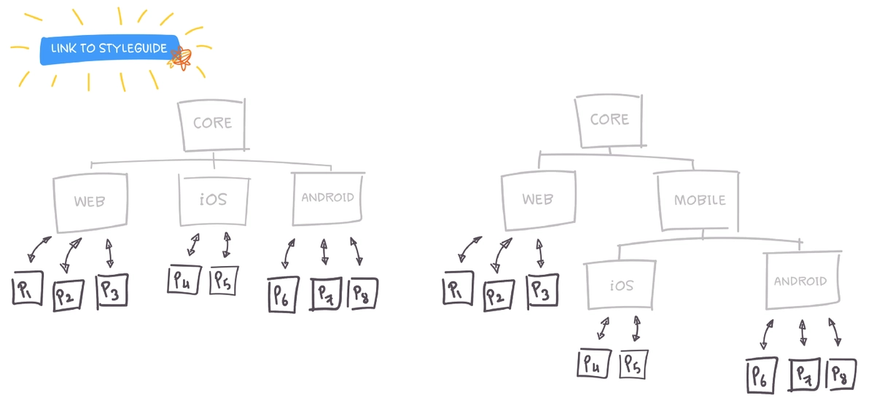 If you have a more complex design system in place, spanning multiple platforms, you can easily create Styleguide trees with parent‑child relationships. This both helps you organize your Styleguides and allows engineers to only see resources specific to their platform. 🌲