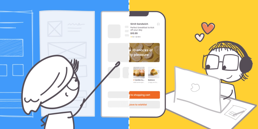 A prototype is a mockup with clickable functions that illustrate how the user will move between mockup screens. Prototypes don't use any code — prototyping tools like Figma, Adobe XD, or Axure allow designers to add basic functions like hover states, clickable buttons and menus, and animations that replicate how the UI will respond to the user's actions.