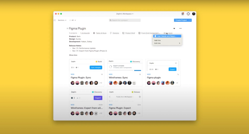 Zeplin consolidates key design information held over a variety of different tools into one place. We can see designs from Jira. You can review user stories and old product requirements stored in Dropbox Paper. You can review the product roadmap and vital user base information.“Because everything is centralized in Sections,” Kundu said,“I could get up to speed quickly. It quickly surfaced info that was important but that I would not have known about otherwise.”