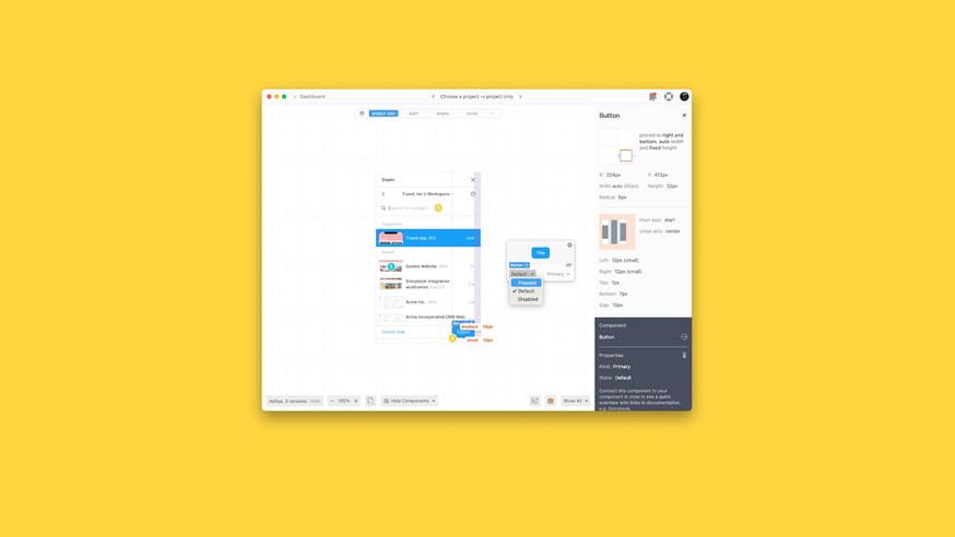 Developers can view any given variant, plus a component state, directly in Zeplin