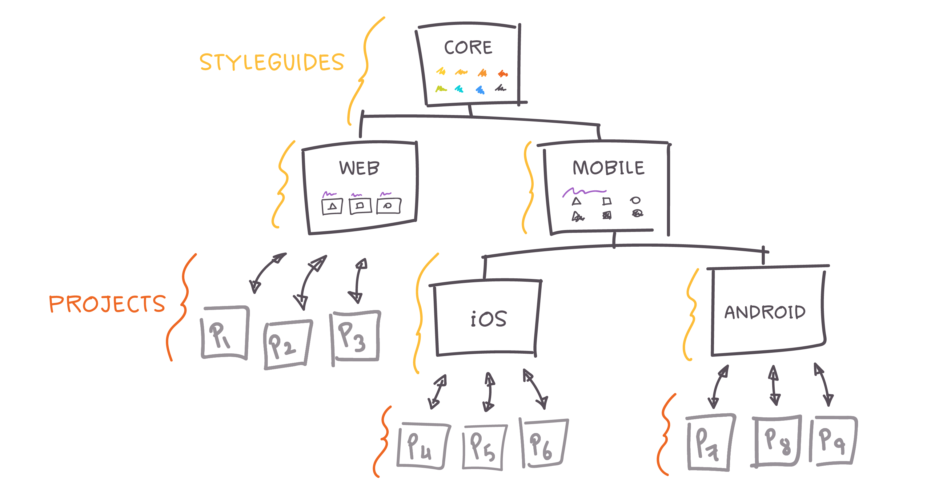 If you have a more complex design system in place, spanning multiple platforms, you can easily create Styleguide trees with parent‑child relationships. This both helps you organize your Styleguides and allows engineers to only see resources specific to their platform. 🌲